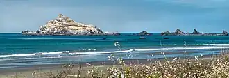 Del Norte County (/dɛl ˈnɔːrt/; Spanish: [del ˈnoɾte]; Spanish for 'Of the North') is a county located at the far northwest corner of the U.S. state of California, along the Pacific Ocean adjacent to the Oregon border. Its population was 27,743 as of the 2020 census, down from 28,610 from the 2010 census. The county seat and only incorporated city is Crescent City.[6] Del Norte was settled and colonized by Azorean Portuguese settlers and dairy farmers, which may account for the local pronunciation of the county name.[7] Locals pronounce the county name as Del Nort, not Del Nor-teh as would be expected in Spanish.[8] Del Norte County comprises the Crescent City, CA Micropolitan Statistical Area. The rural county is notable for forests containing giant Coast Redwoods, with some attaining heights over 350 feet (110 m). This northernmost county on the California coast also has scores of unique plants and flowers, dozens of species of coastal birds and fish, rocky primitive beaches and sea stacks, pristine rivers and historic lighthouses.
