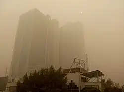 Delhi features a dry winter humid subtropical climate (Köppen Cwa) bordering a hot semi-arid climate (Köppen BSh). The warm season lasts from 21 March to 15 June with an average daily high temperature above 39 °C (102 °F). The hottest day of the year is usually in late May, with an average high of 42 °C (108 °F) and a low of 27 °C (81 °F).[83] The cold season lasts from 26 November to 9 February with an average daily high temperature below 20 °C (68 °F). The coldest day of the year is usually in January, with an average low of 6.9 °C (44.4 °F) and a high of 19.3 °C (66.7 °F).[83] In early March, the wind direction changes from north-westerly to south-westerly. From April to October, the weather is hot. The monsoon arrives at the end of June, along with an increase in humidity. The brief, mild winter starts in late November, peaks in January, and heavy fog often occurs.[84] Delhi receives an average annual precipitation of 774.4 mm (30.49 in).[85]