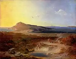 Delos had a position as a holy sanctuary for a millennium before Olympian Greek mythology made it the birthplace of Apollo and Artemis. From its Sacred Harbour are visible the three conical mounds that have identified landscapes sacred to a goddess (presumably Athena). Another site, retaining its Pre-Greek name Mount Cynthus,[1] is crowned with a sanctuary of Zeus.