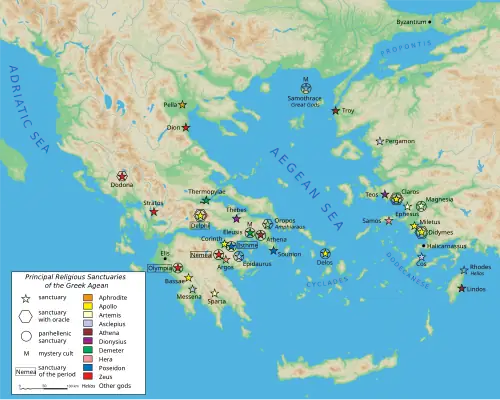 49. ^ Pedley, John (2005). Sanctuaries and the Sacred in the Ancient Greek World. Cambridge University Press. p. 151.