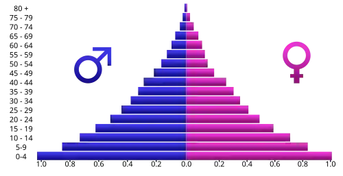 Another characteristic of Stage 2 is a change in the age structure of a population. In Stage 1, the majority of deaths are concentrated in the first 5–10 years of life. For this reason, the decline in death rates in Stage 2 involves the increasing survival of children and a growing overall population. Hence, the age structure of the population becomes increasingly youthful; people begin to have large families, and more of these children enter the reproductive period of their lives while maintaining the high fertility rates of their parents. The bottom of the population pyramid—where infants, children, and teenagers are located—widens first, accelerating population growth rate. The age structure of such a population can be illustrated by using an example from the Third World today.