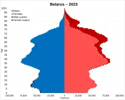 As a population continues to move through the demographic transition into the third stage, fertility declines, and the youth bulge prior to the decline ages out of child dependency into working age. This stage of the transition is often referred to as the golden age, and it is typically when populations experience the greatest advancements in living standards and economic development.[34] However, further declines in both mortality and fertility will eventually result in an aging population, as well as a rise in the age dependency ratio. An increase in the age dependency ratio often indicates that a population has reached below-replacement levels of fertility; as a result, it does not have enough people of working age to support the economy and the growing dependent population.[34]