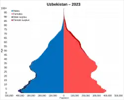 Population pyramid of Uzbekistan in 2023 (Stage 3).