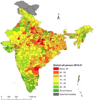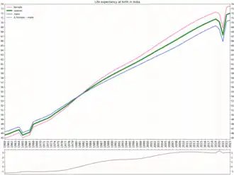 - ^ Life expectancy at birth, total – India (Report). BMC Public Health. 2024. doi:10.1186/s12889-024-18278-3. PMC 11021017. PMID 38627658.
