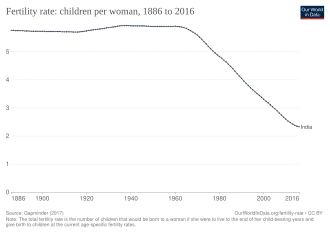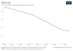 - ^ "Birth rate in India, 1950 to 2023". Our World in Data. Global Change Data Lab. Retrieved 13 January 2025.