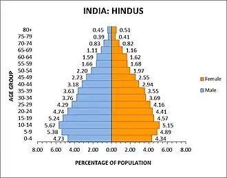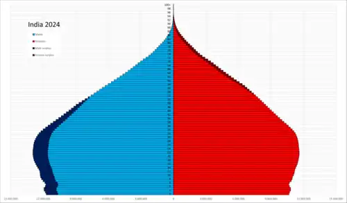 ![]() Population pyramid of India in 2024 | |