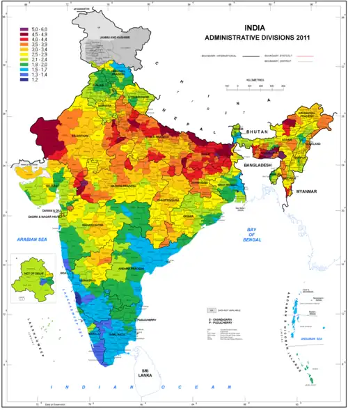 - ^ "Birth Rate, Death Rate, Infant Mortality Rate and Total Fertility Rate: India and States". National Commission on Population, Govt of India. 2010. Archived from the original on 19 June 2009. Retrieved 17 January 2012.