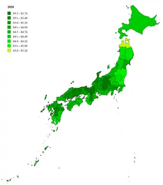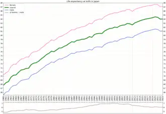 60. ^ "Life expectancy at birth, total - Japan". World Bank Group.