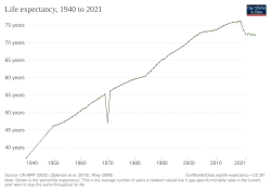 | 1975–1980 | 58.5 | 2010–2015 | 74.2 |