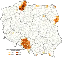 Główny Urząd Statystyczny (GUS), the Polish central statistics office, published multiple separate counts of foreign nationals living in Poland for the 2021 census. GUS counted 445,176 foreign nationals towards Poland's usually resident population (1.2% share) and 111,814 foreign nationals towards Poland's official population (0.3% share).[55] It also counted 1,433,779 foreign nationals as temporarily living in Poland (of whom 309,309 lived in Poland for more than 12 months).[56] It is unclear what is the overlap of these populations.