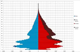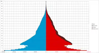 ![]() Population pyramid of Russia as of 1 January 2024 | |
