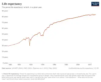 - ^ a b c d "Life expectancy". Our World in Data. Retrieved 28 August 2018.