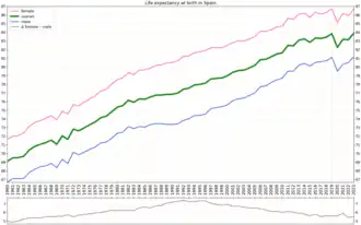 - ^ "Spanish Statistical Office: Life expectancy at birth by Province and by sex". National Statistics Institute (Spain). Retrieved 14 February 2025.