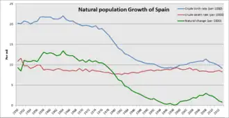 - 2015. First negative natural change since the Civil War due to the aging of Spanish population.