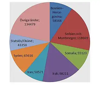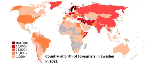- ^ "Population in Sweden by Country/Region of Birth, Citizenship and Swedish/Foreign background, 31 December 2022". Archived from the original on 25 March 2023. Retrieved 25 March 2023.