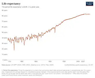 - ^ a b "Life expectancy". Our World in Data. Archived from the original on 19 October 2021. Retrieved 11 October 2018.