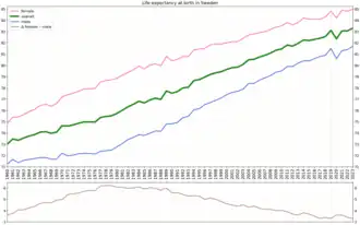 | Life expectancy in Sweden | 43.2 | 50.0 | 47.6 | 49.1 | 50.4 | 53.4 | 54.5 | 58.0 | 58.7 | 58.2 | 61.0 | 62.3 | 64.9 | 68.7 | 70.8 |