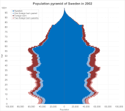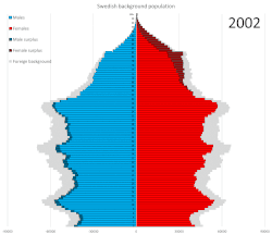 - ^ a b c d e f g "Sveriges framtida befolkning, 2003–2020: Svensk och utländsk bakgrund" (PDF). Statistics Sweden (SCB) (in Swedish). May 2003. Archived (PDF) from the original on 19 May 2023.