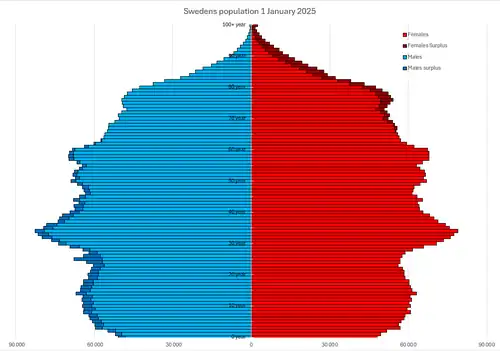 - ^ "Population and population changes in Sweden by sex. Year 1749 - 2024". Statistikdatabasen. Retrieved 22 June 2025.