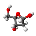 Several isomers exist with the formula H−(C=O)−(CH2)−(CHOH)3−H, but in deoxyribose all the hydroxyl groups are on the same side in the Fischer projection. The term "2-deoxyribose" may refer to either of two enantiomers: the biologically important d-2-deoxyribose and to the rarely encountered mirror image l-2-deoxyribose.[5] d-2-deoxyribose is a precursor to the nucleic acid DNA. 2-deoxyribose is an aldopentose, that is, a monosaccharide with five carbon atoms and having an aldehyde functional group.