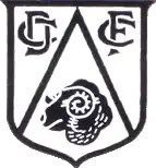 By 1934, another badge had been introduced. This time it was a traditionally shaped shield, again with three sections. The buck in the park had been removed and the rose and the crown had been split up and now occupied a section each. The ram's head also remained and was now given the largest section of the shield. The badge never appeared on the players' shirts. The shield was modified in 1946 when the rose and crown were removed and replaced with the letters "DC" (Derby County) and "FC" (Football Club) respectively. The badge, right, was featured on the player's shirts from its introduction onwards, though the ram's head on its own was used from the late 1960s (the full shield, however, remained the club's official logo).
