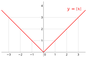 If is differentiable at , then must also be continuous at .[11] As an example, choose a point and let be the step function that returns the value 1 for all less than , and returns a different value 10 for all greater than or equal to . The function cannot have a derivative at . If is negative, then is on the low part of the step, so the secant line from to is very steep; as tends to zero, the slope tends to infinity. If is positive, then is on the high part of the step, so the secant line from to has slope zero. Consequently, the secant lines do not approach any single slope, so the limit of the difference quotient does not exist. However, even if a function is continuous at a point, it may not be differentiable there. For example, the absolute value function given by is continuous at , but it is not differentiable there. If is positive, then the slope of the secant line from 0 to is one; if is negative, then the slope of the secant line from to is .[12] This can be seen graphically as a "kink" or a "cusp" in the graph at . Even a function with a smooth graph is not differentiable at a point where its tangent is vertical: For instance, the function given by is not differentiable at . In summary, a function that has a derivative is continuous, but there are continuous functions that do not have a derivative.[13]