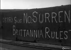 A civil rights demonstration in 1968 led by the Northern Ireland Civil Rights Association was banned by the Government and blocked using force by the Royal Ulster Constabulary.[72] The events that followed the August 1969 Apprentice Boys parade resulted in the Battle of the Bogside, when Catholic rioters fought the police, leading to widespread civil disorder in Northern Ireland and is often dated as the starting point of the Troubles.