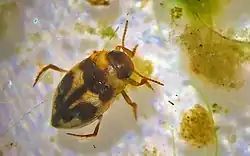 Predators of the Devils Hole pupfish include the diving beetle species Neoclypeodytes cinctellus, which consumes its eggs and juveniles.[25][26] N. cinctellus likely also preys on some of the same invertebrates as does the Devils Hole pupfish, meaning that it is a competitor as well as a predator. The diving beetle only recently became part of the ecosystem, and was first documented at Devils Hole in 1999 or 2000.[26]