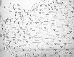 Dialectologists record variation across a dialect continuum using maps of various features collected in a linguistic atlas, beginning with an atlas of German dialects by Georg Wenker (from 1888), based on a postal survey of schoolmasters. The influential Atlas linguistique de la France (1902–10) pioneered the use of a trained fieldworker.[5] These atlases typically consist of display maps, each showing local forms of a particular item at the survey locations.[6]