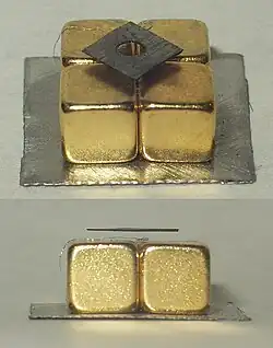 A simple homemade device for demonstration can be constructed out of bismuth plates and a few permanent magnets that levitate a permanent magnet.[15]