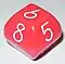 3 Rounded-off triangular prism A long die intended to be rolled lengthwise. When the die is rolled, one edge (rather than a side) appears facing upwards. On either side of each edge the same number is printed (from 1 to 3). The numbers on either side of the up-facing edge are read as the result of the die roll.