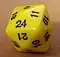 Eighteen faces are squares. The eight triangular faces are rounded and cannot be landed on.