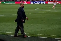 On 6 December 2009, it was announced Advocaat would function as manager of both the Belgium national team and Dutch club AZ.[108] Advocaat succeeded Ronald Koeman, who was dismissed the previous day, and his contract ran until the end of the 2009–10 season. Advocaat only watched AZ's final group match of the Champions League on 9 December 2009, which Martin Haar managed.[109] He was officially presented to the media the following day.[108][110] His first match in charge was against PSV in the Eredivisie on 12 December 2009; AZ lost 1–0.[111] His first win managing the club came the following weekend, a 3–0 win against ADO Den Haag.[112] Belgium lost to Croatia on 3 March 2010.[113]