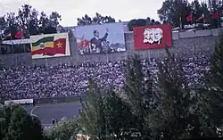 A communist rally in Addis Ababa, Ethiopia, during the country's period of Marxist dictatorship, the People's Democratic Republic of Ethiopia
