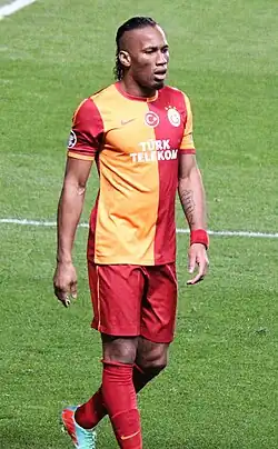 He won his first title with Galatasaray on 5 May, with a 4–2 win over Sivasspor.[130] In Galatasary's derby match against Istanbul rivals Fenerbahçe on 12 May, Drogba and his Ivorian teammate Emmanuel Eboue were subjects of racist chants from opposing fans in the team's 2–1 loss, but no fine or bans were handed down to the supporters or the club.[131] On 11 August, he scored the only goal in the 2013 Turkish Super Cup against the same opponents,[132] and he scored two second-half goals in a 2–1 away win against fellow city rivals Beşiktaş on 22 September, although the match was abandoned due to hooliganism from fans of the opponents.[133]