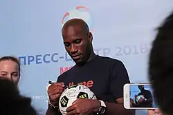 Drogba played a vital role in solving issues in his home country and in Africa.[18] In 2007, he was appointed a Goodwill Ambassador for the United Nations Development Programme. In December 2018, he became Vice President of the international organization Peace and Sport.[19]