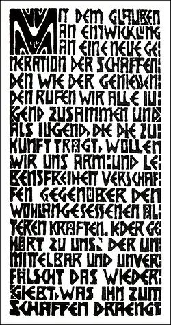 - ^ "Ernst Ludwig Kirchner, Manifesto of the Brücke Artists' Group (Programm der Künstlergruppe Brücke) (1906)". Museum of Modern Art. February 23, 2024. Retrieved February 23, 2024.