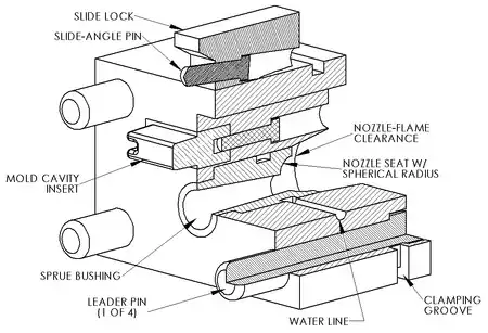 | Ejector pins | H13[note 2] | 46–50 HRC | H13[note 2] | 46–50 HRC | H13[note 2] | 46–50 HRC |