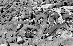 The 2nd Canadian Infantry Division was chosen for the operation and given three months' specialist training in amphibious operations up to July. The Canadians assembled at embarkation ports and went aboard their ships, where the target was revealed. German aircraft spotting and bombing the assembled ships[24] and inclement weather forced a delay in sailing and on 7 July, Rutter was cancelled and the troops disembarked.[25][26][27]