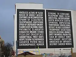 In 2003 and 2004, Diesel began supporting local, young artists through the Diesel New Art and Diesel Wall competitions. Diesel New Art was open to graduating artists working across various media, and would award-winning artists with solo exhibitions, shows at international art fairs, or promotion through internationally published catalogues.[97] For Diesel Wall Diesel purchased large, unused facades in major cities and transformed them into popular exhibition spaces. Winning artworks were selected by an independent jury, and displayed on the walls for a longer period of time throughout the year.[98] During the years a few of the jury members have included curator Hans Ulrich Obrist,[99] film director Bigas Luna, art director and graphic designer Peter Saville,[100] artist Patrick Tuttofuoco, art director Jérôme Sans and editors Helena Kontova and Stefano Boeri.[101]