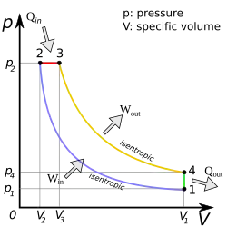 Diesel was heavily criticised for his essay, but only a few found the mistake that he made;[13] his rational heat motor was supposed to utilise a constant temperature cycle (with isothermal compression) that would require a much higher level of compression than that needed for compression ignition. Diesel's idea was to compress the air so tightly that the temperature of the air would exceed that of combustion. However, such an engine could never perform any usable work.[14][15][16] In his 1892 US patent (granted in 1895) #542846, Diesel describes the compression required for his cycle:[17]