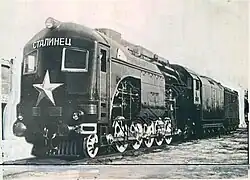 - The engine Ээл2 (Eel2 original number Юэ 001/Yu-e 001) started on October 22. It had been designed by a team led by Yuri Lomonosov and built 1923–1924 by Maschinenfabrik Esslingen in Germany. It had five driving axles (1'E1'). After several test rides, it hauled trains for almost three decades from 1925 to 1954.[22] It became a model for several classes of Soviet diesel locomotives.