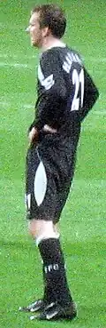 During the UEFA Euro 2000 qualifying, Hamann established himself as a key player for a transitional Germany side. He played in all of Germany's games at the final tournament as they exited in the first round. Hamann was the last player to score at the old Wembley Stadium before its demolition[25] when he scored the winning goal in Germany's 2002 World Cup qualifier against England in October 2000.[26][27]