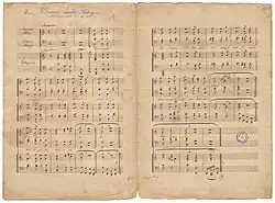 ![]() Sheet music for the national anthem of Latvia in the handwriting of Kārlis Baumanis | |