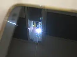 Some everyday electronic components contain fine and regular patterns, and as a result readily serve as diffraction gratings. For example, CCD sensors from discarded mobile phones and cameras can be removed from the device. With a laser pointer, diffraction can reveal the spatial structure of the CCD sensors.[32] This can be done for LCD or LED displays of smart phones as well. Because such displays are usually protected just by transparent casing, experiments can be done without damaging the phones. If accurate measurements are not intended, a spotlight can reveal the diffraction patterns.