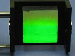 Another method for manufacturing diffraction gratings uses a photosensitive gel sandwiched between two substrates. A holographic interference pattern exposes the gel, which is later developed. These gratings, called volume-phase holography diffraction gratings (or VPH diffraction gratings) have no physical grooves, but instead a periodic modulation of the refractive index within the gel. This removes much of the surface scattering effects typically seen in other types of gratings. These gratings also tend to have higher efficiencies, and allow for the inclusion of complicated patterns into a single grating. A VPH diffraction grating is typically a transmission grating, through which incident light passes and is diffracted, but a VPH reflection grating can also be made by tilting the direction of a refractive index modulation with respect to the grating surface.[26] In older versions of such gratings, environmental susceptibility was a trade-off, as the gel had to be contained at low temperature and humidity. Typically, the photosensitive substances are sealed between two substrates that make them resistant to humidity, and thermal and mechanical stresses. VPH diffraction gratings are not destroyed by accidental touches and are more scratch resistant than typical relief gratings.