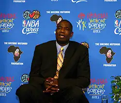 In 2004, he participated in the Basketball Without Borders NBA program, where NBA stars such as Shawn Bradley, Malik Rose and DeSagana Diop toured Africa to spread the word about basketball and to improve the infrastructure.[101] He paid for uniforms and expenses for the Zaire women's basketball team during the 1996 Centennial Olympic Games in Atlanta.[101] Mutombo was a spokesman for the international relief agency, CARE and was the first youth emissary for the United Nations Development Program.[77]