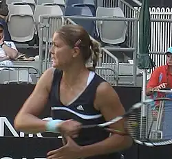 Safina played her first WTA Tour tournament of the season in Sydney, where she lost in the final to Elena Dementieva.[53] At the Australian Open, Safina defeated Alizé Cornet in the fourth round.[54] Safina defeated the Australian wild-card entry Jelena Dokić in the quarterfinals and Vera Zvonareva in the semifinals to reach the second Grand Slam final of her career.[55] She lost to Serena Williams in the final in 59 minutes.[56] After losing early in Dubai to Virginie Razzano,[57] Safina went on to the Indian Wells tournament, where she reached the quarterfinals before losing to Victoria Azarenka.[58] In Miami, Safina lost in the third round to Samantha Stosur.[59]