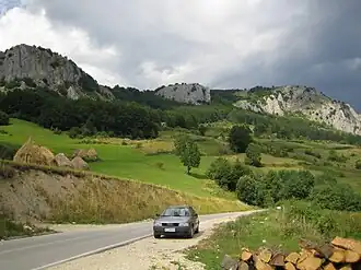The Dinaric Karst region is built mostly of Mesozoic limestone and dolomite deposited on top of a huge Bahama-type carbonate platform,[6] while a few kilometers thick carbonate successions have been deformed during the Alpine orogenesis.[7] The main tectonic phase of the Alpine orogenesis in the Dinaric Karst region took place in the Cenozoic Era (Paleogene) as a result of the Adriatic microplate (Adria) collision with the Serbo-Macedonian and Rhodope Massifs,[8] and the process is still active.[4] The Mesozoic limestone forms a very distinctive region of the Balkans, notable for features such as the Karst Plateau, which has given its name to all such terrains of limestone eroded by groundwater. The Dinarides are known for being composed of karst – limestone rocks – as is Dinara, the mountain for which they were named.[5] The Quaternary ice ages had relatively little direct geologic influence on the Balkans. No permanent ice caps existed, and there is little evidence of extensive glaciation. Only the highest summits of Durmitor, Orjen and Prenj have glacial valleys and moraines as low as 600 m (1,969 ft). However, in the Accursed Mountains (Serbo-Croatian: Prokletije), a range on the northern Albanian border that runs east to west (thus breaking the general geographic trend of the Dinaric system), there is evidence of major glaciation.