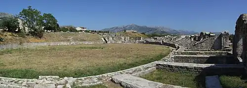 Diocletian retired to his homeland, Dalmatia.[214] He moved into the expansive Diocletian's Palace, a heavily fortified compound located by the small town of Spalatum on the shores of the Adriatic Sea, and near the large provincial administrative center of Salona.[215] The palace is preserved in great part to this day and forms the historic core of Split, modern-day Croatia, where it was designated a World Heritage Site by UNESCO in 1979.[216]